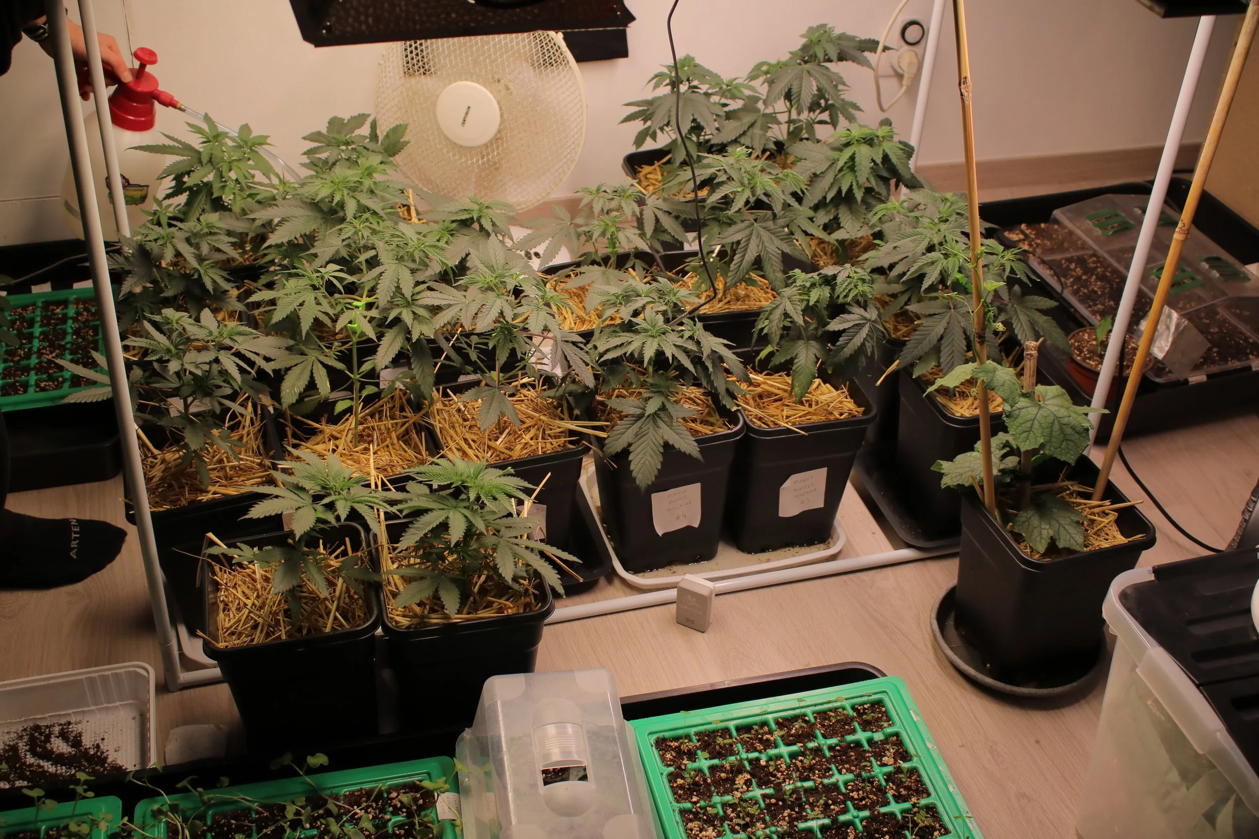 Au niveau du climat on reste stable, la température de la pièce est légèrement décendue volontairement à 24°C, on sent que la température extérieure se réchauffe car c’est les leds qui maintiennent la température à l’intérieur maintenant. Ça commence à sentir de plus en plus le chanvre et c’est un plaisir de se reveiller et d’aller sentir ces éffluves.